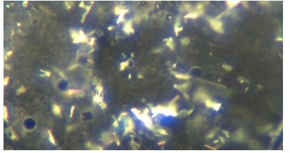 Persistent optical activity, where certain residues continue to display anomalous luminescence or refractive patterns under dark field microscopy.
